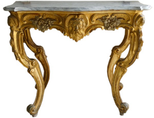 19thC. Gilt wood console table with marble top |