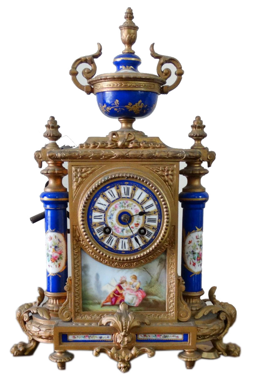 Antique French mantelpiece clock with serve plaques