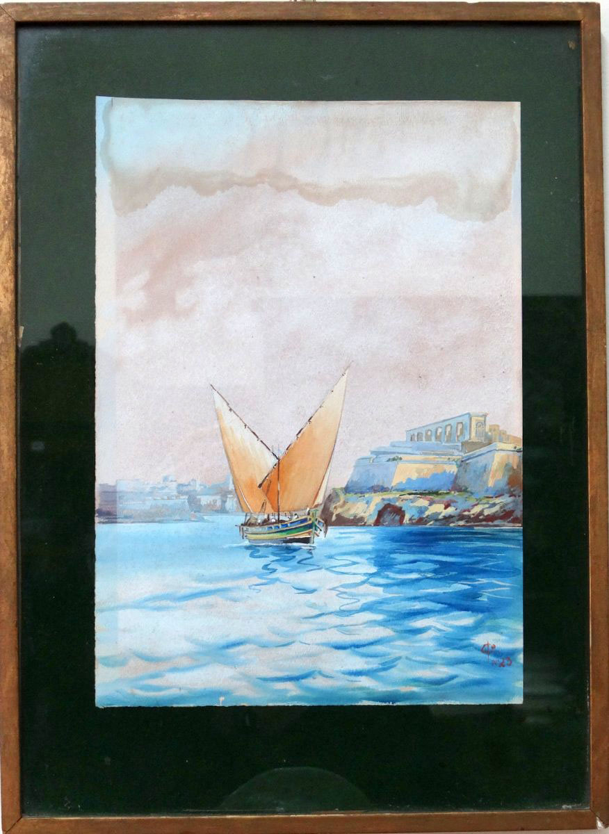 D'esposito watercolour Grand harbor Scene