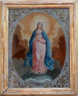 Antique oil on glass in gilt frame Madonna |