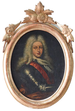 Small antique oil painting in oval gilt frame Knight