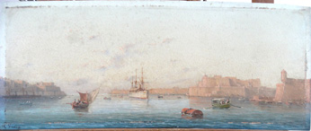L.M.Galea Oil on Board Malta Harbour Scene 35 X 14cm |