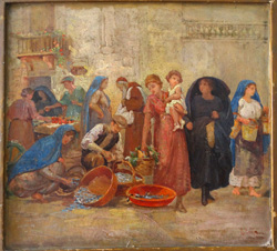 G.Vella Oil on Board Street Hawkers |