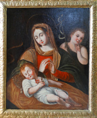 18thC. Oil Madonna & Child With Infant St.John |