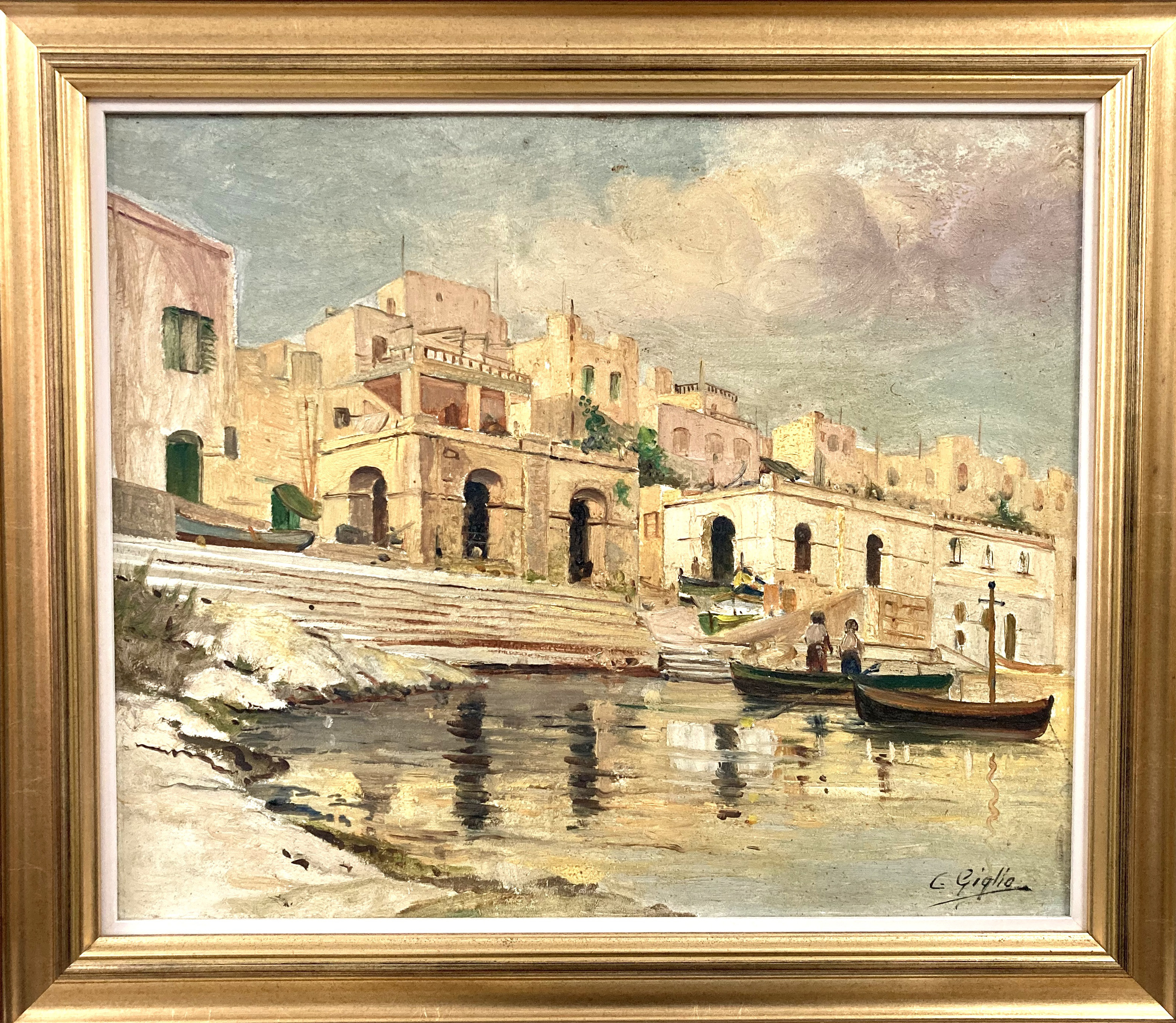 L.M.Galea Oil Painting Malta Harbour Scene 1907 |