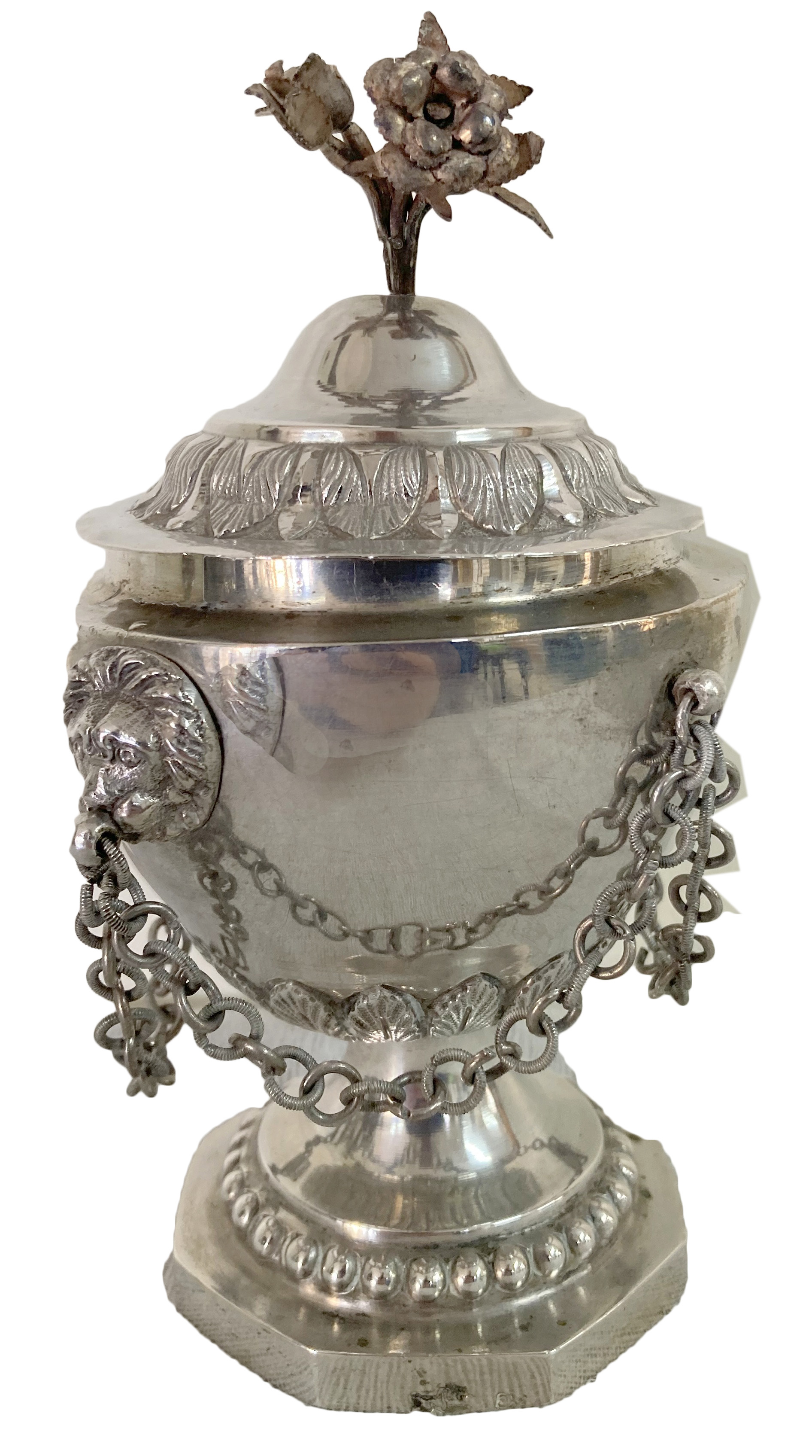 Large Antique Italian Silver Oil Lamp |