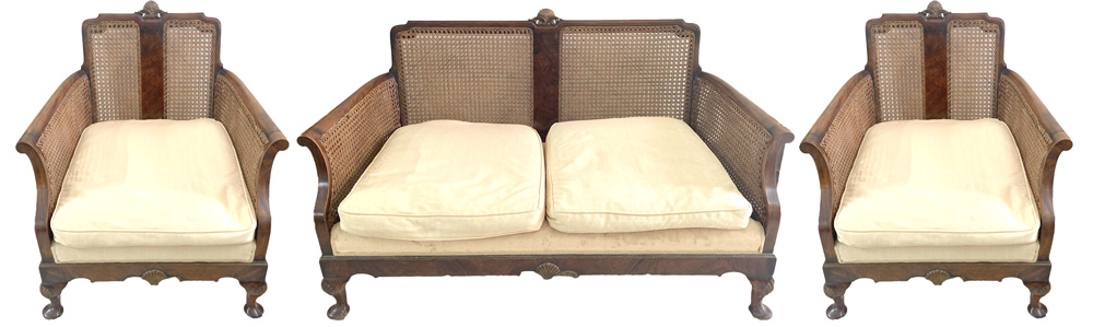 Walnut Framed 3 Piece Bergere Suite |