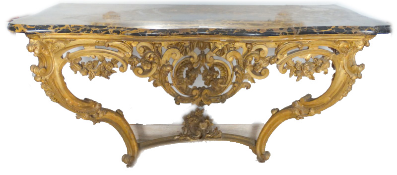 19thC.Carved gilt wood console table with marble top