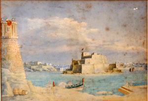 G.Pullicino Gouache Malta Harbour View |