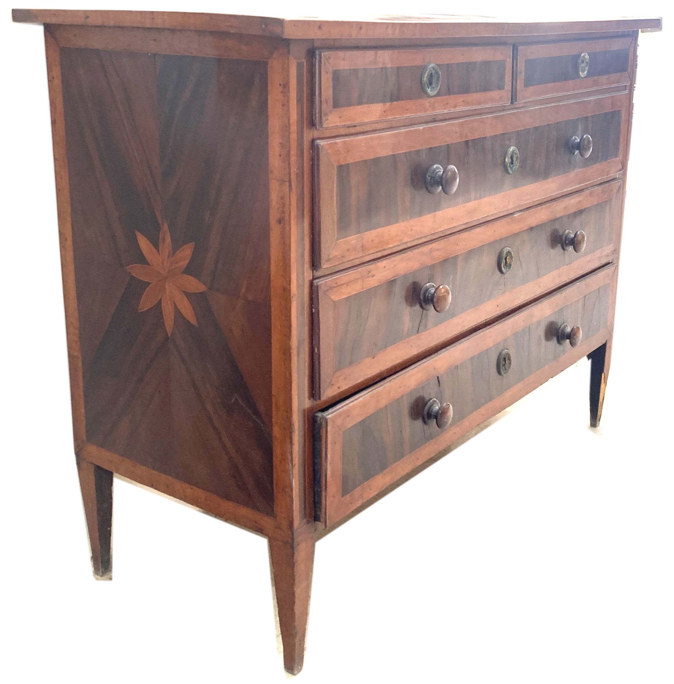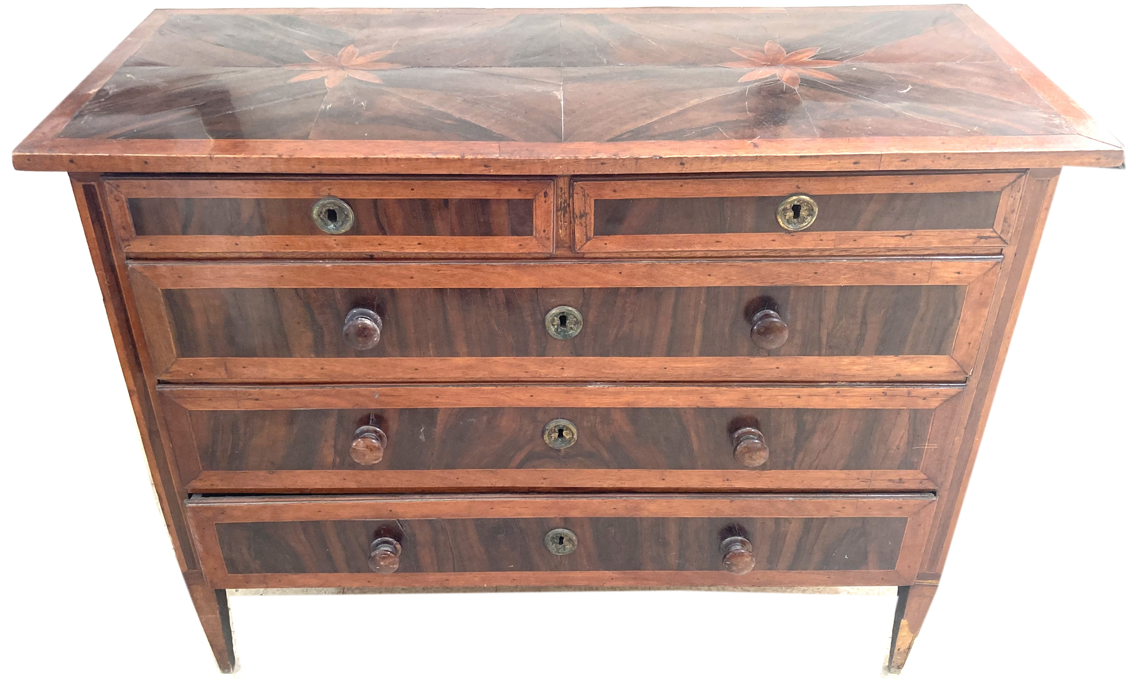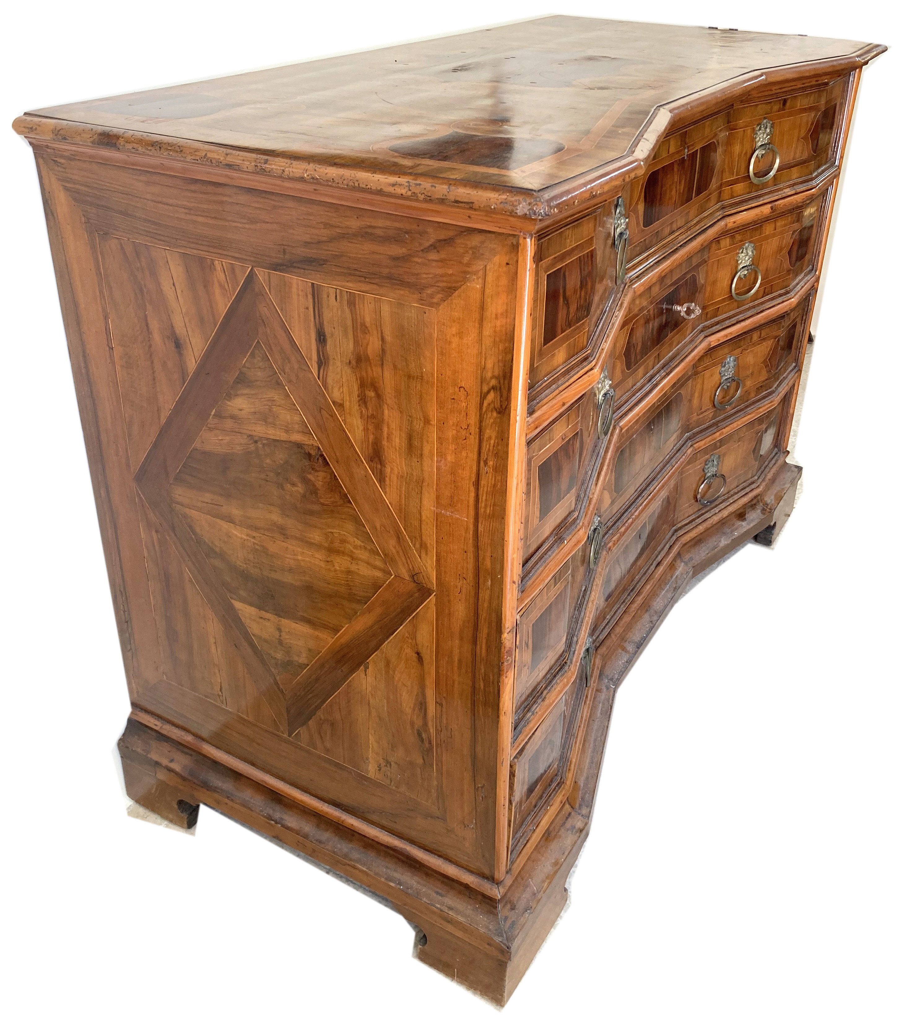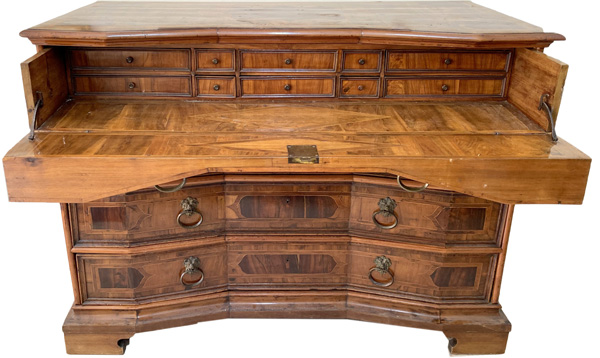 18thC. Chest Secretaire Veneered in olive walnut with geometric designs
