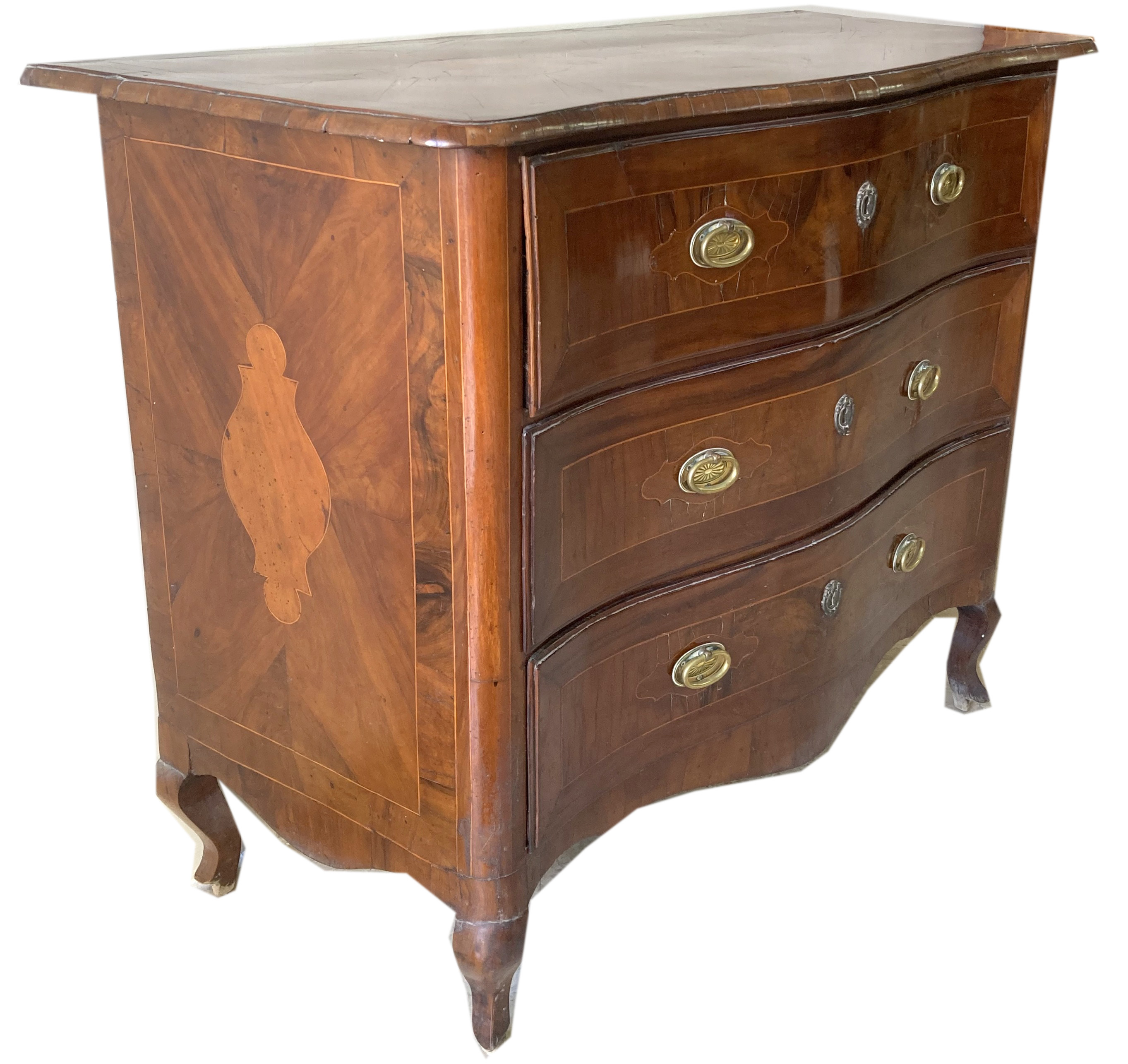 Small 18thC. Maltese Serpentine Front Chest of 3 Drawers