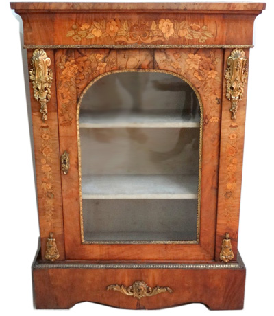 Antique inlaid walnut semi circular 4 tier whatnot |