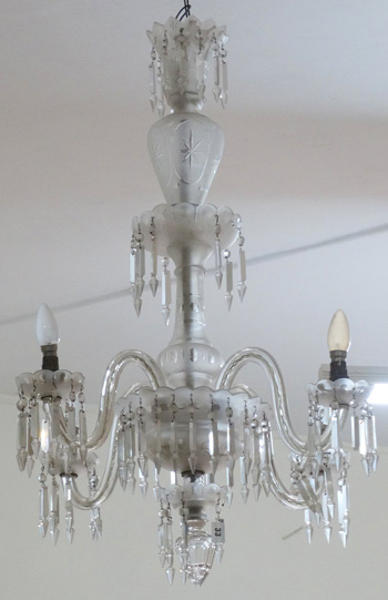 Antique Ruby and gilt glass oil lamp and shade having prismatic drops |