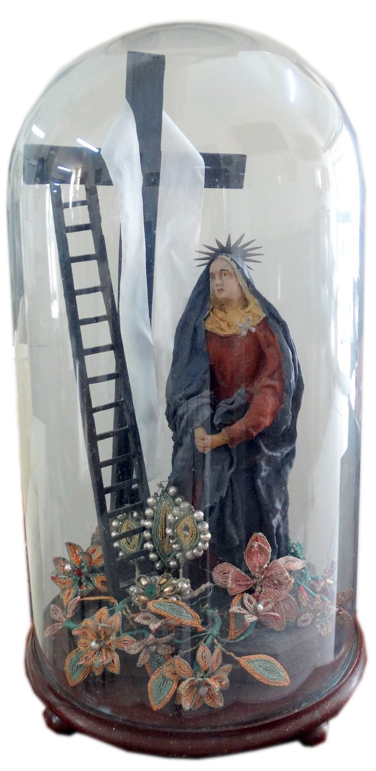 Antique Papier Mache figure of Our Lady of Sorrows under glass dome |