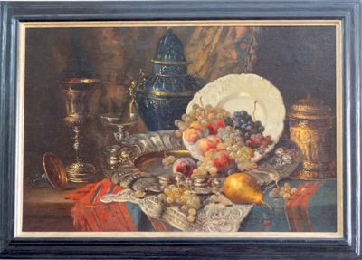 Antique oil painting in ebonised frame - Still Life of Fruit on a table |