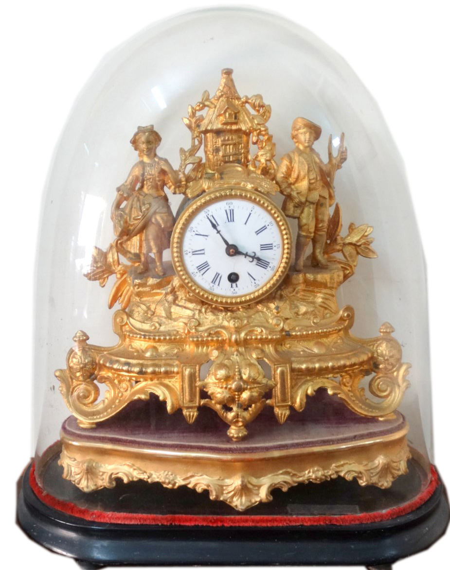 Michele Noseda Marseille brass clock under a glass dome circa 1800 |