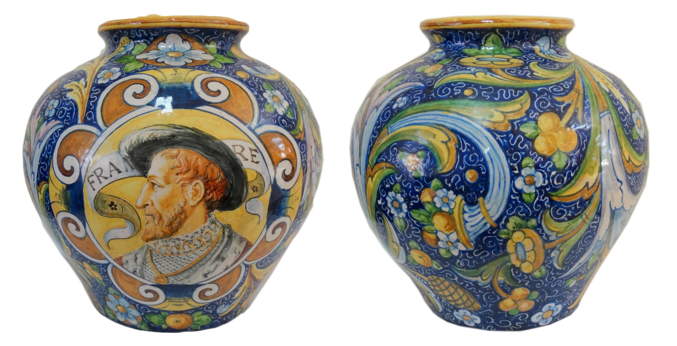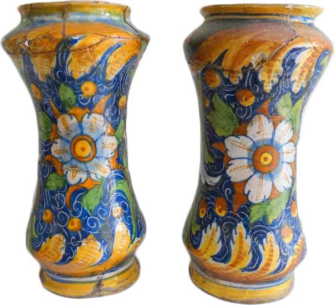 Pair 18thC. Majolica Albarelli (damaged) Front & Back