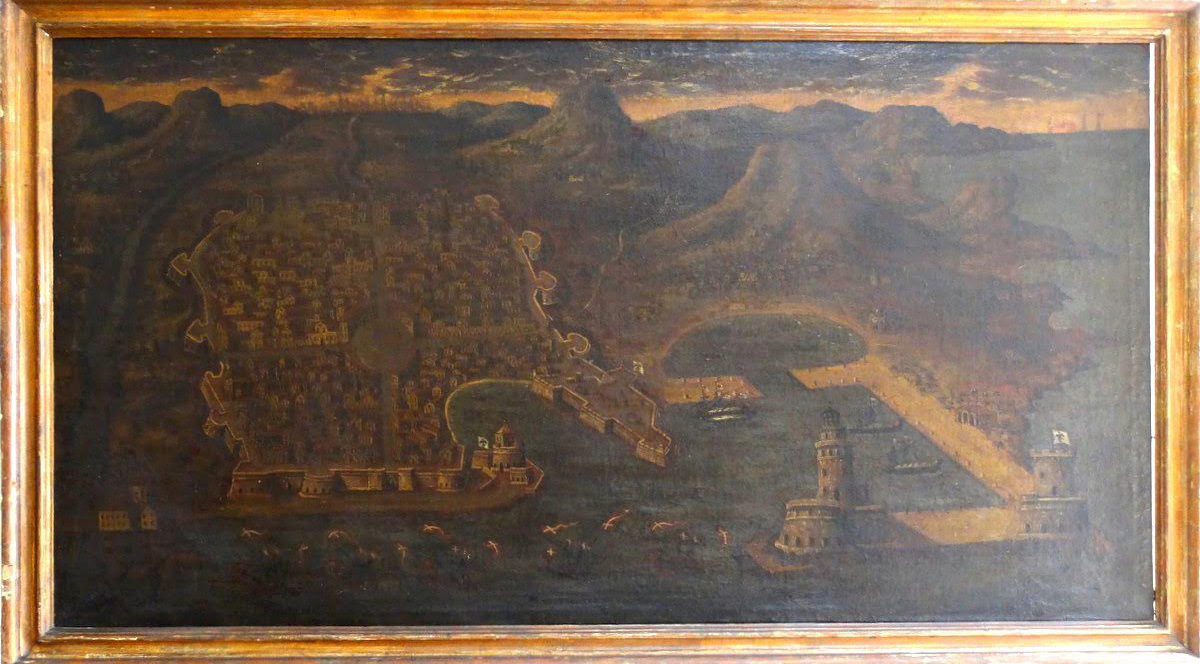 19thC. Birds Eye View of The City of Rhodes with Knights Galleons |