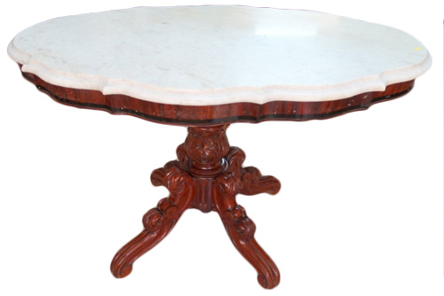 Victorian mahogany centre table (tal biscuttin ) with white marble top |