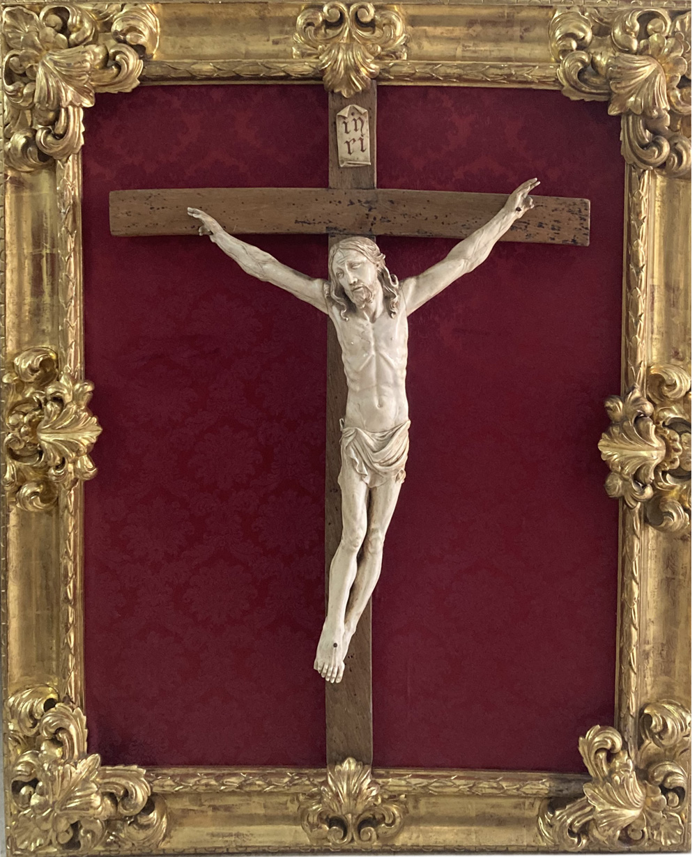 Large 17thC. Ivory Crucifix in Carved Giltwood Frame