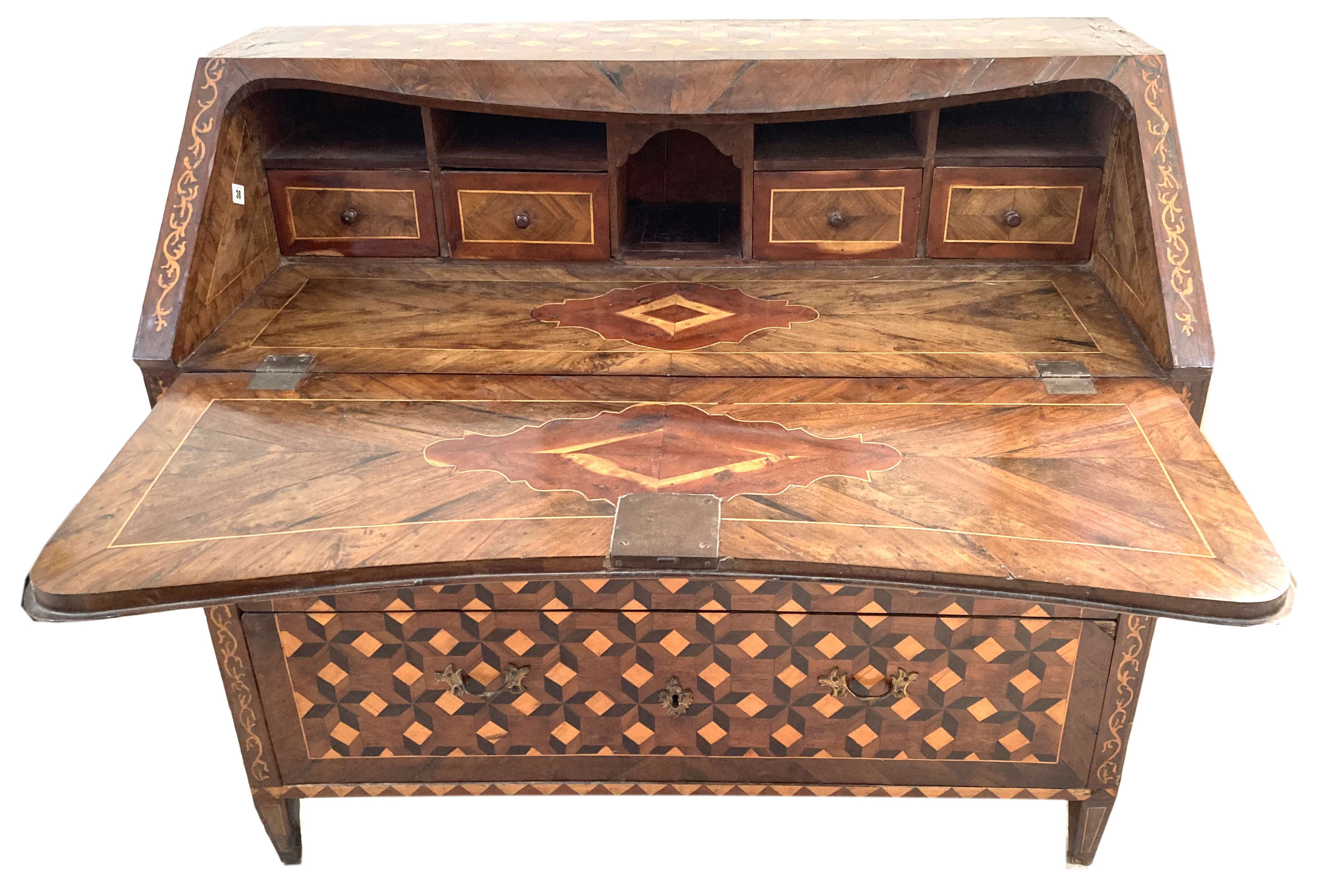 19thC. Maltese Olivewood Bureau With Parquetry Inlay