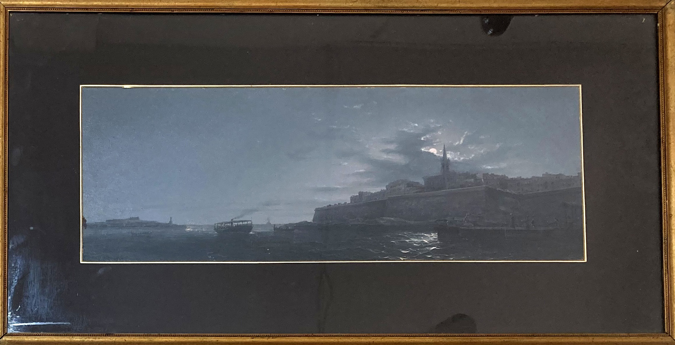 G.Gianni 1883 Moonlight Harbour Scene