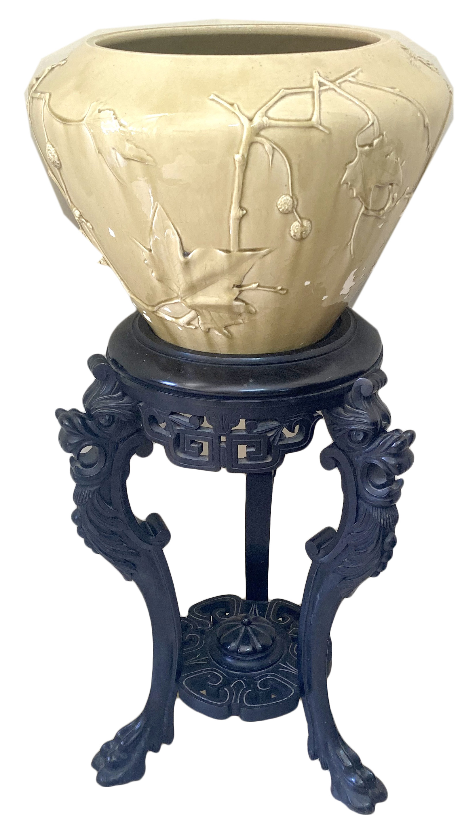Glazed Pottery Planter on Ebony Stand