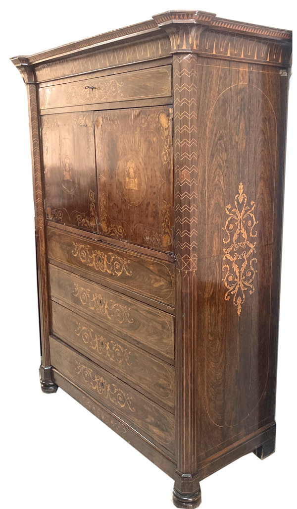 Pair Victorian Rosewood Richly Inlaid Linen Cupboards