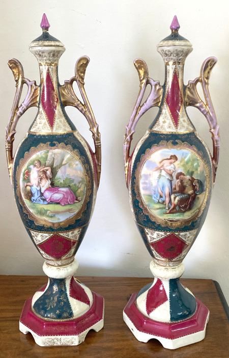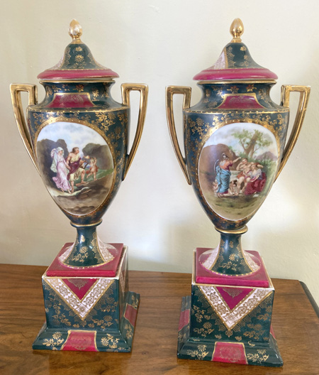 Pair Antique Vienna Vases With Lids |