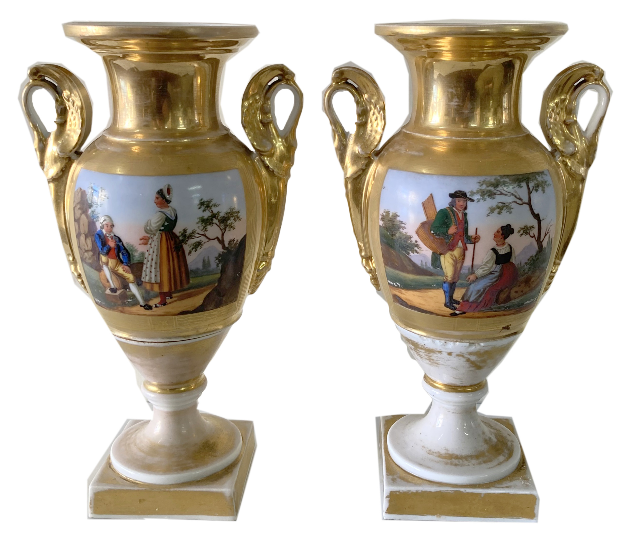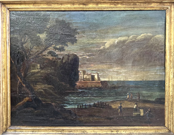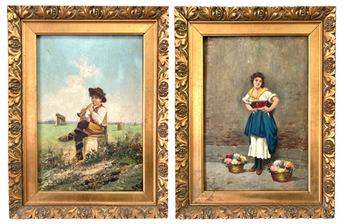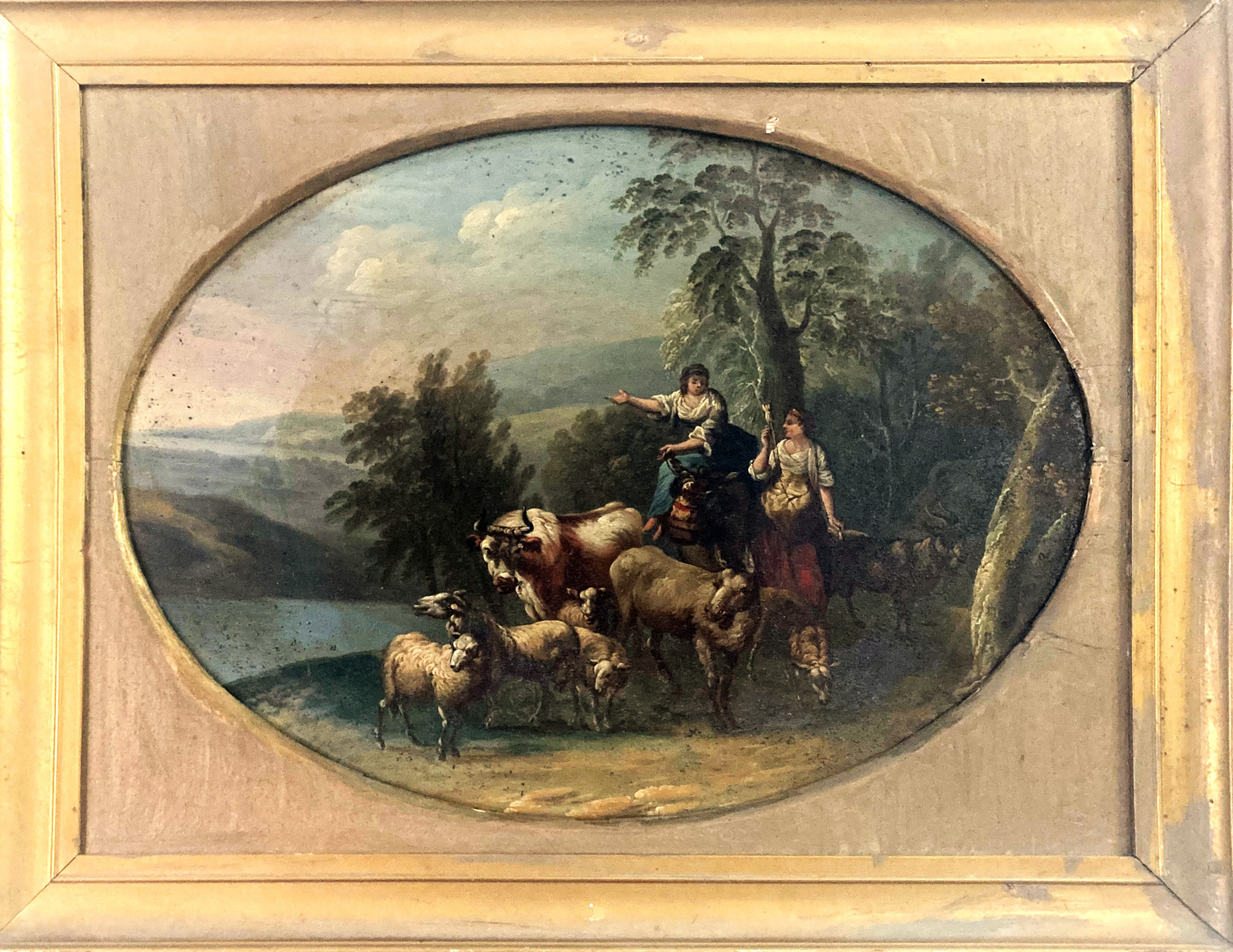 Pair Small 18thC. Oils, Farmers and Classical Ruins