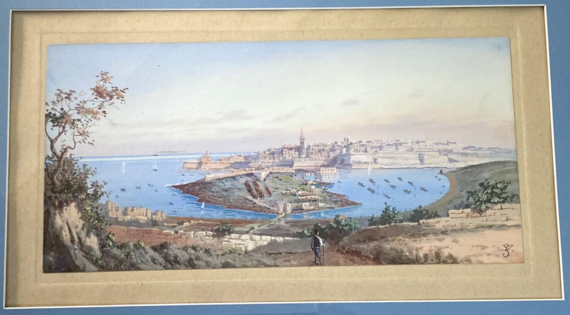 J Bonello Gouache Manoel Island from Tal-Qroqq |