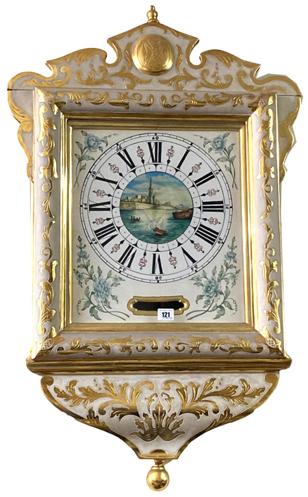 Large 19thC. Gilt Mantle Clock under Glass Dome |