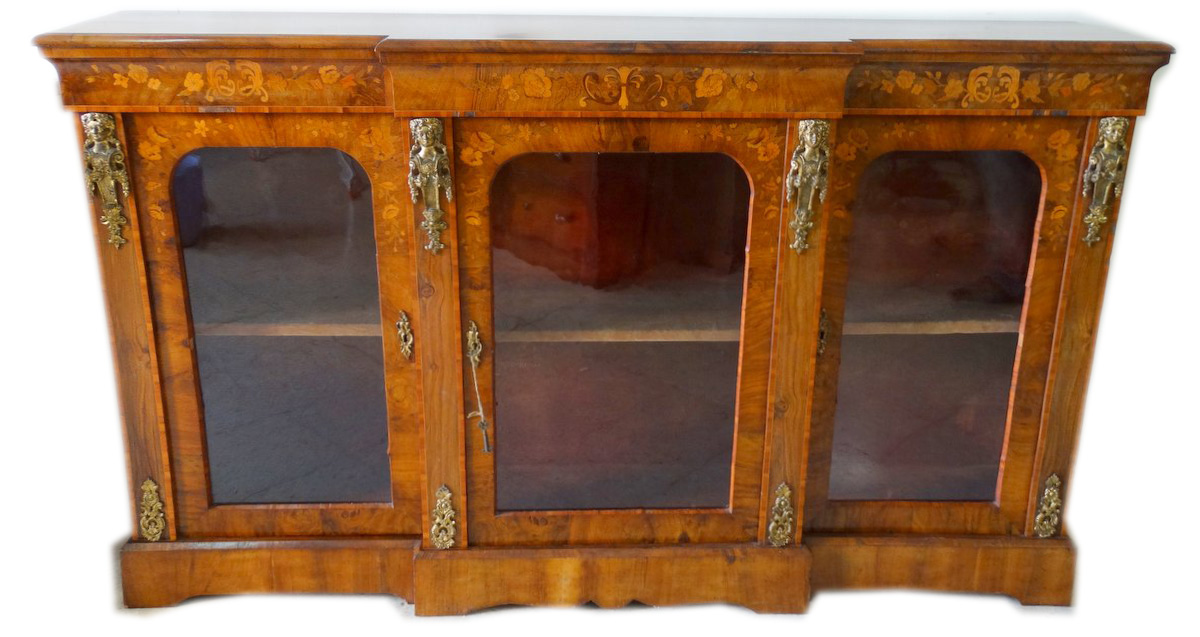 A fine Victorian walnut richly inlaid with marquertry 3 door cabinet