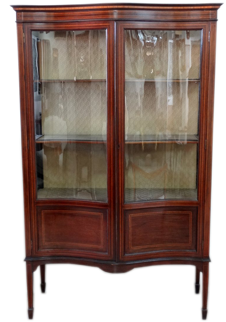 Edwardian inlaid mahogany 2 door curio cabinet with shaped glass doors |