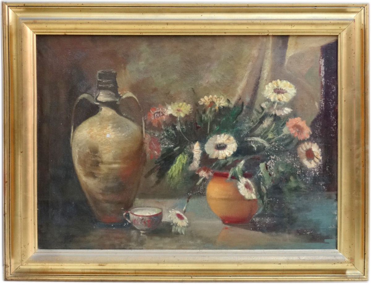 Pair oval oil paintings by Frank Borg |