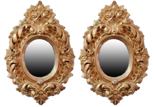 Pair 19thC. Gilded oval frames with mirrors |