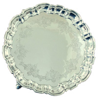 1. Large silver kettle on stand by R.Garrard 1836 - 2. Sheffield silver tray - 3. Small Hall marked silver salver - 4. Silver Britannia cup circa 1860 2410 grams