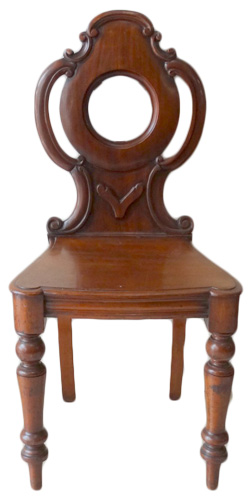 Pair Victorian mahogany hall chairs