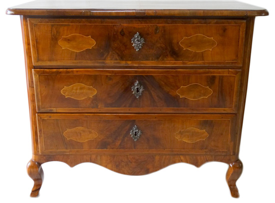 Early 19thC. Maltese olivewood chest of 3 drawers (of small proportion)