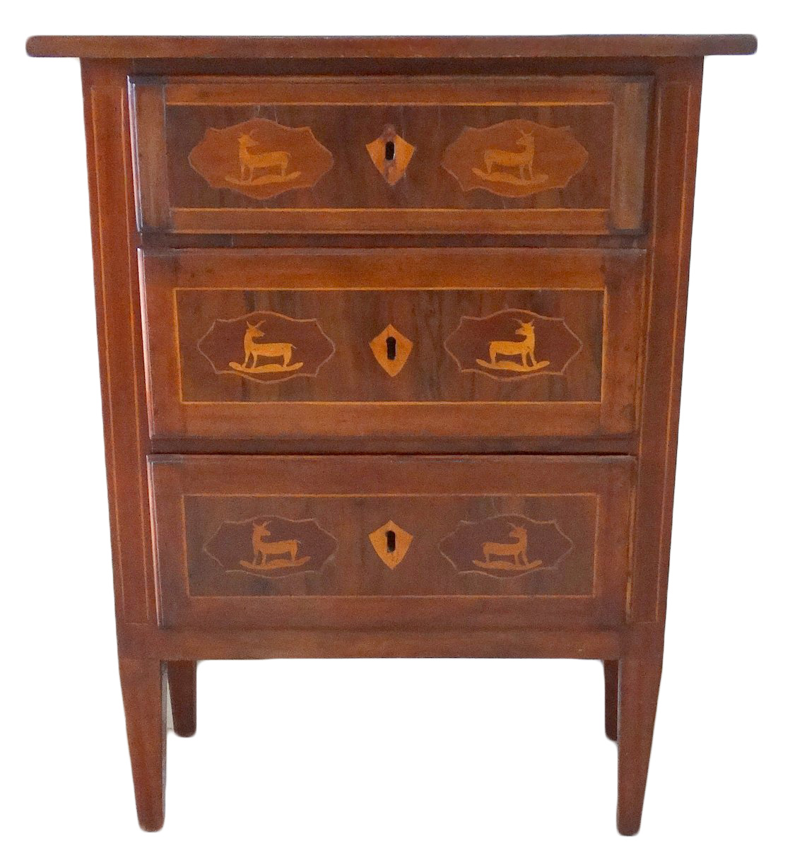 Small Maltese veneered in olive wood inlaid chest of 3 drawers |