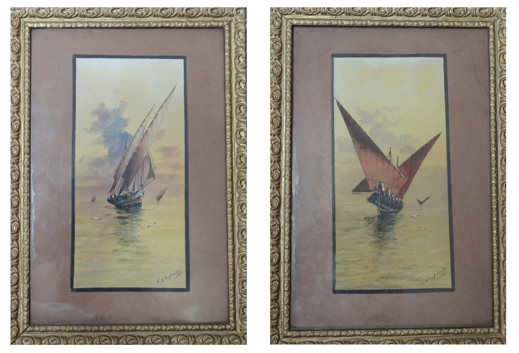 Pair small watercolours by Desposito Luzzu in full sail