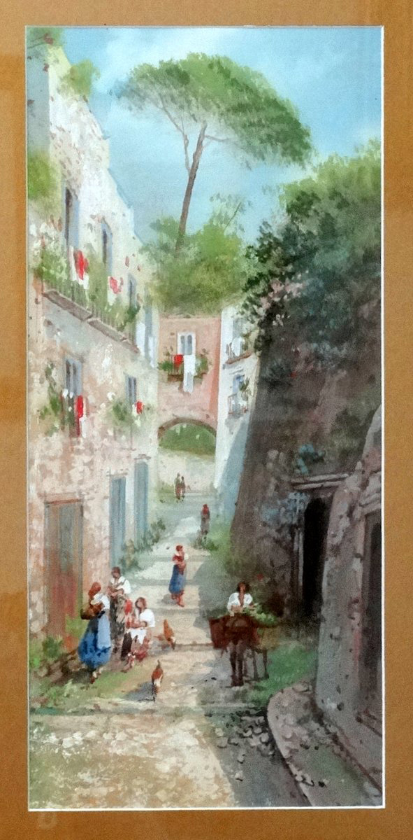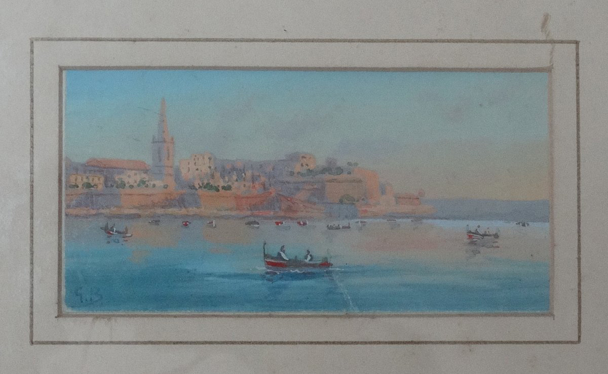 Small watercolour by G. Bonello Harbour Scene |