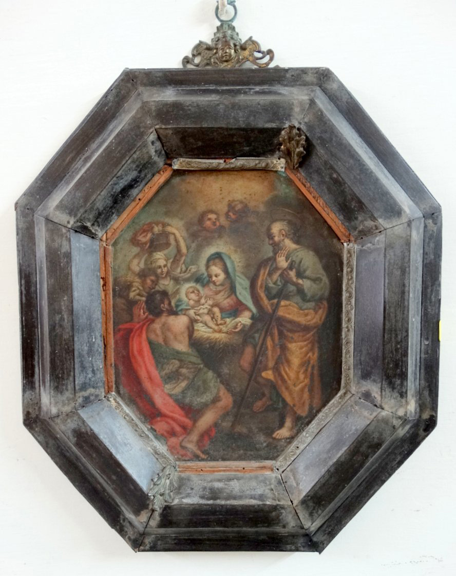 Small antiqueoil painting on copper The Holy Family