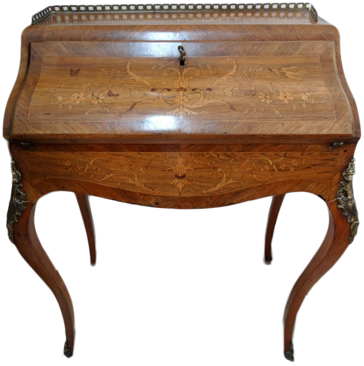 Victorian rose wood richly inlaid bureau de dame