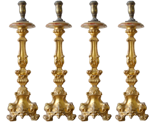 Set of 4 antique Gilded Candlesticks 32cm high |
