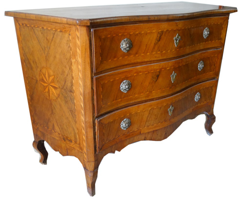 19thC. Maltese Serpentine Front Olive wood Chest of 3 Drawers