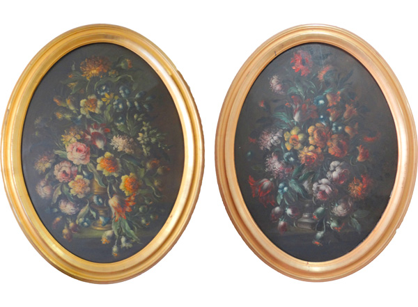 Fine Pair of 18thC. Oil Paintings Flowers |