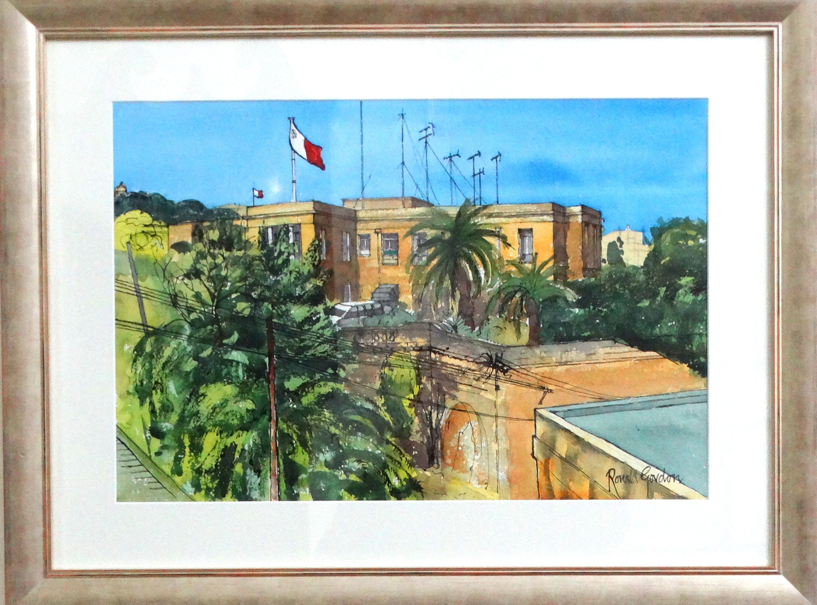 Giorgio Pullicino Pair small Watercolours Malta Harbour Views |