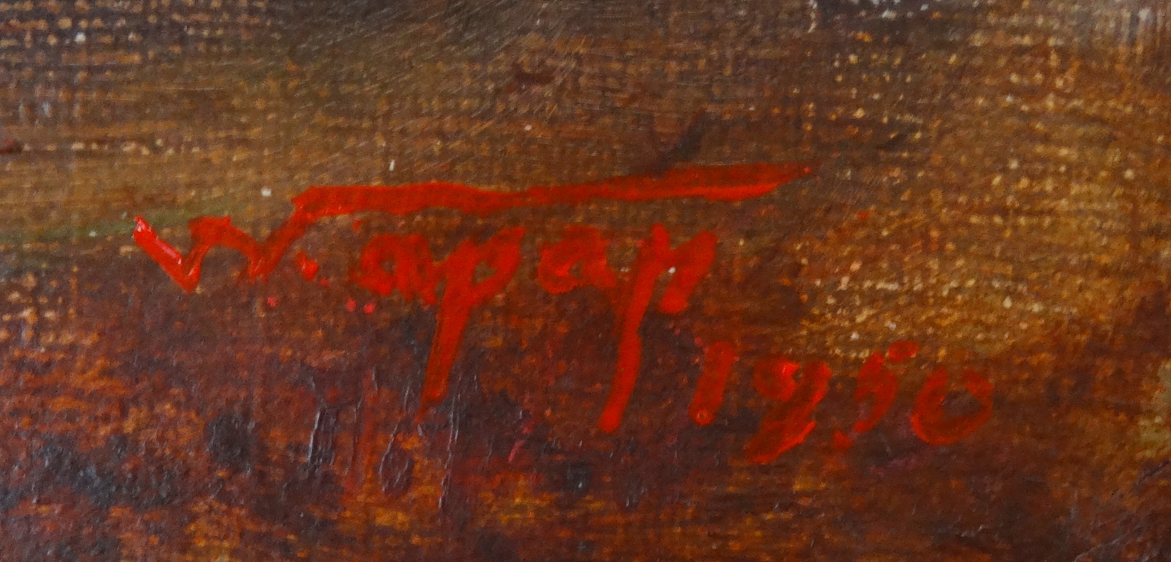 L.M.Galea Pair Oil on Board Harbour Scene & Moonlight Scene 21.5cm X 53cm |