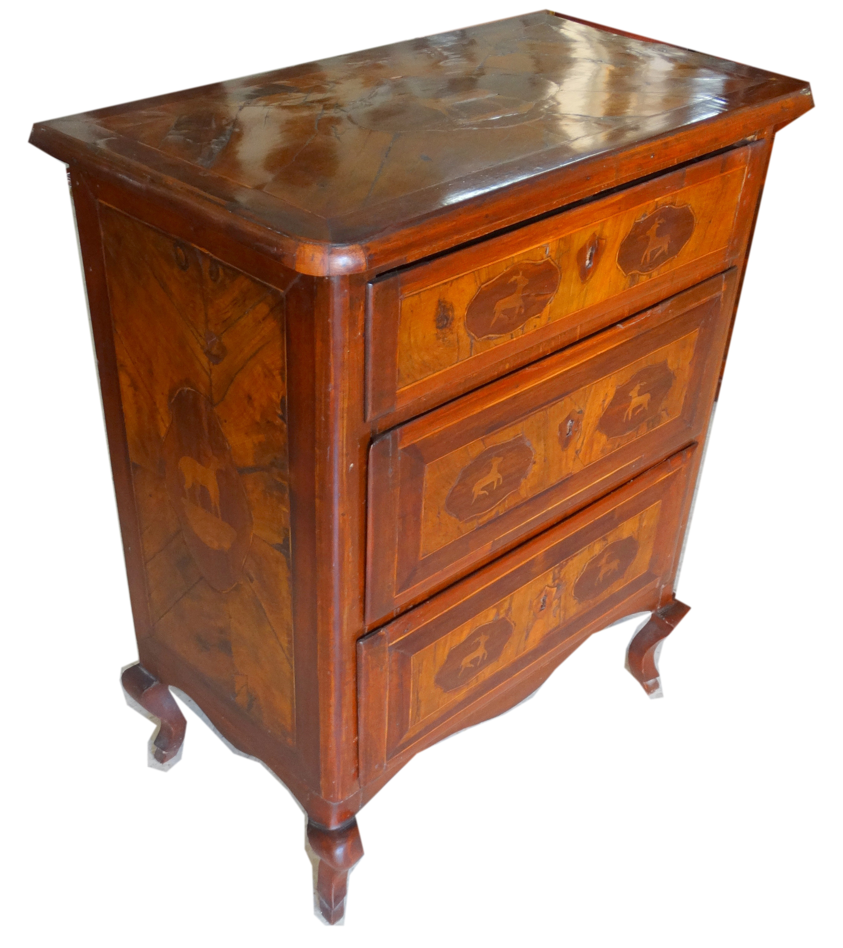 Small Antique 3 Drawer Chest with Bird Motifs adapted |